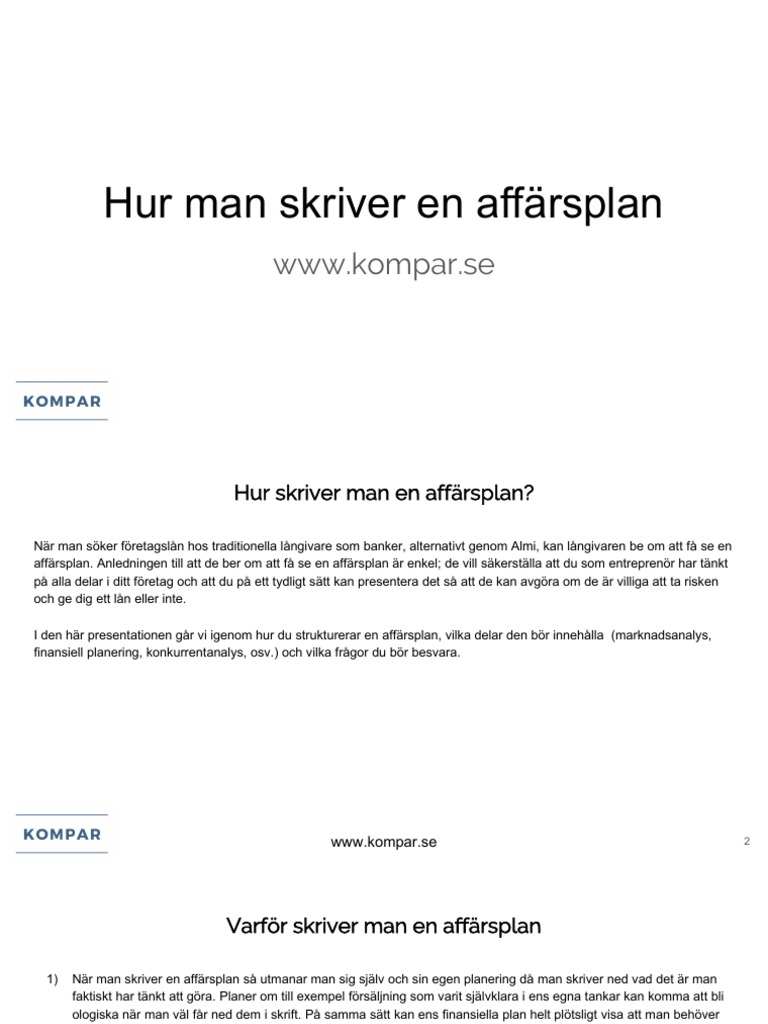 Affärsplan ett verkligt exempel mallar på affärsplaner finns det gott om t ex.