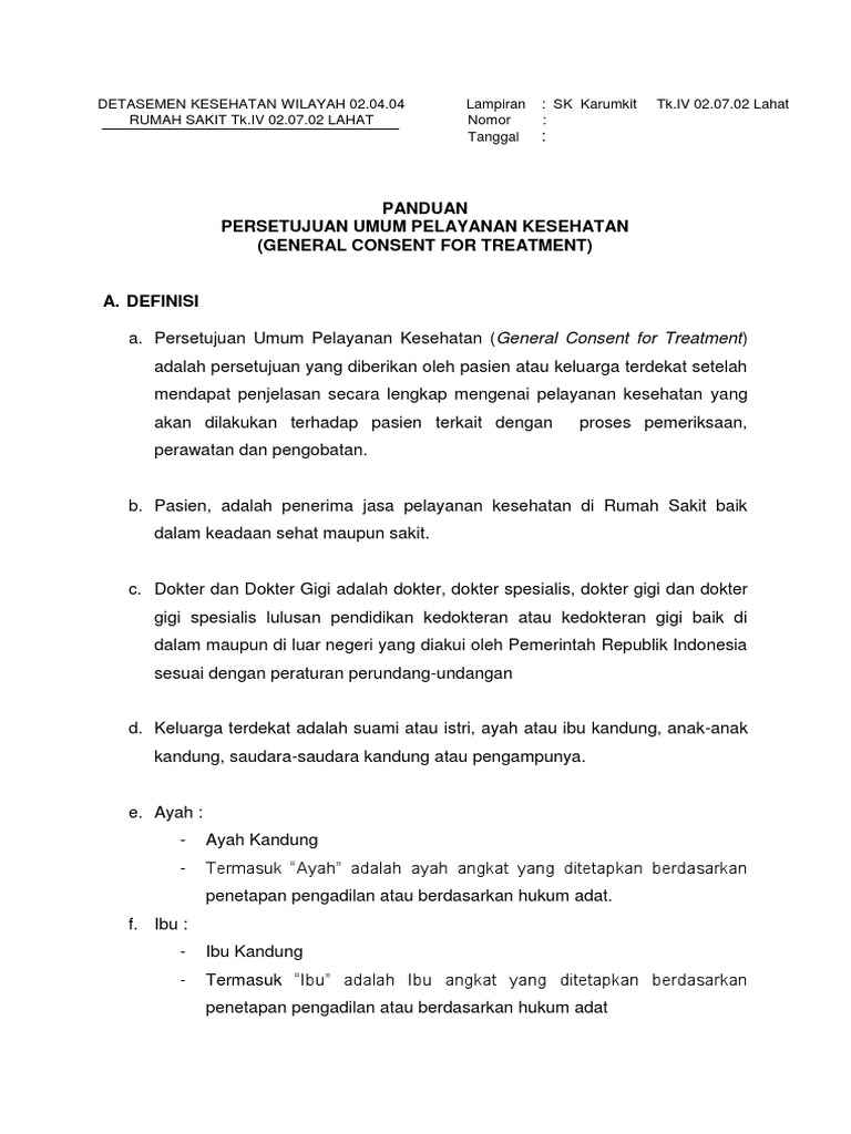 Doc Contoh Format Persetujuan Tindakan Medik Checklist