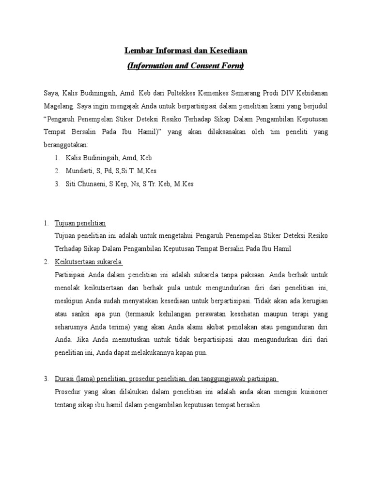 Lembar Informasi Dan Kesediaan Information And Consent Form