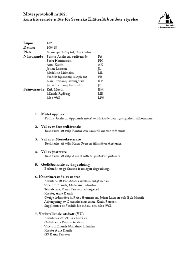 Motesprotokoll Mall Gratis Mall For Skriva Protokoll Pa Motet