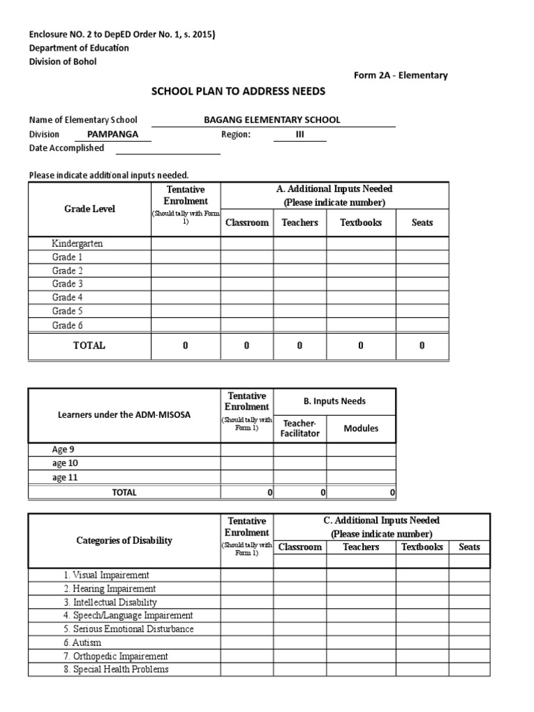 2015 Early Registration Form 2a Elementary Template Xlsx Special
