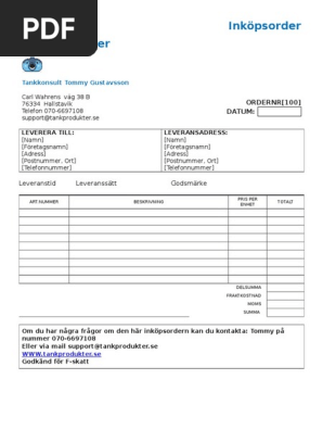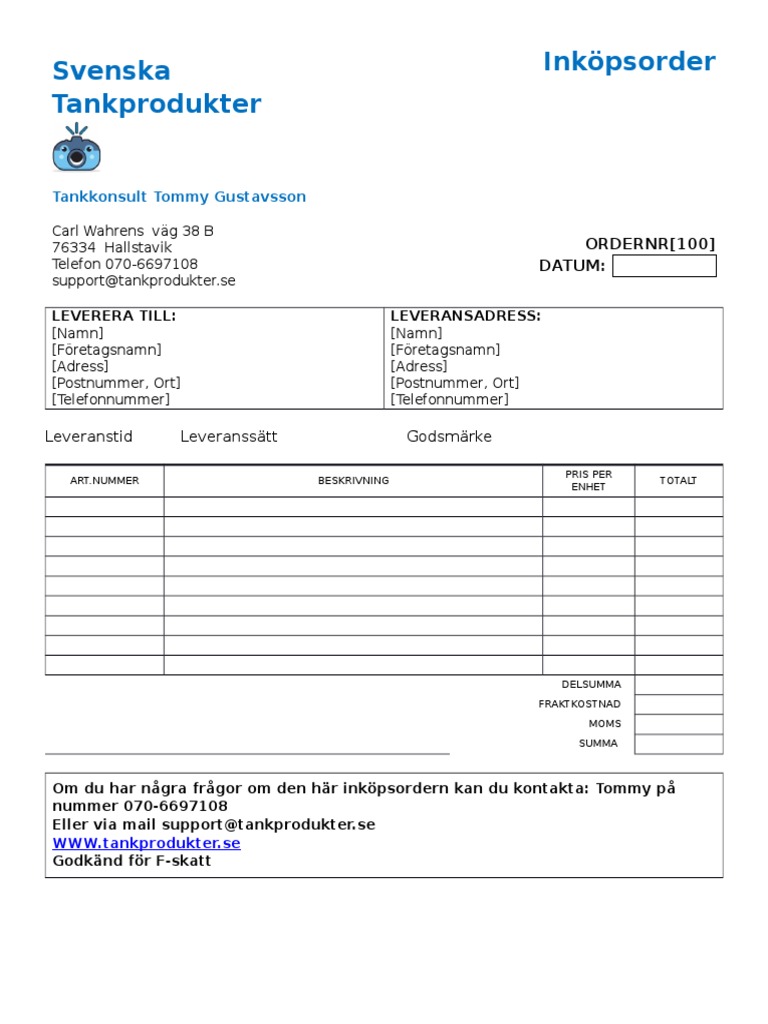Inkopsorder Bestallning Gratis Mall Mallar Biz