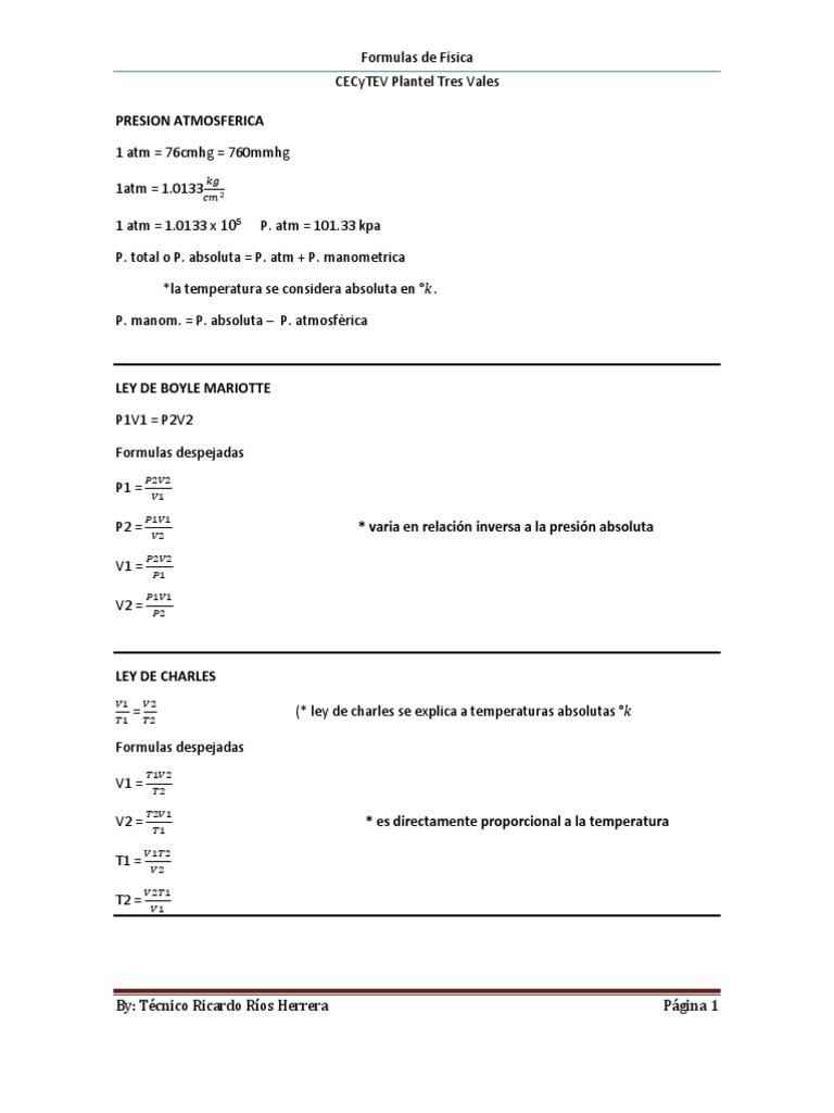 Formulas De Fisica Ii Fisica Matematica Gases Prueba