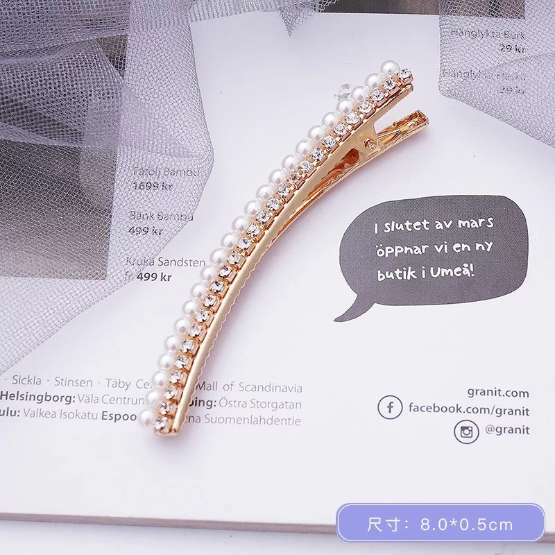 Temperamen Versi Korea Shiny Rhinestone Mutiara Jepit Rambut Emas