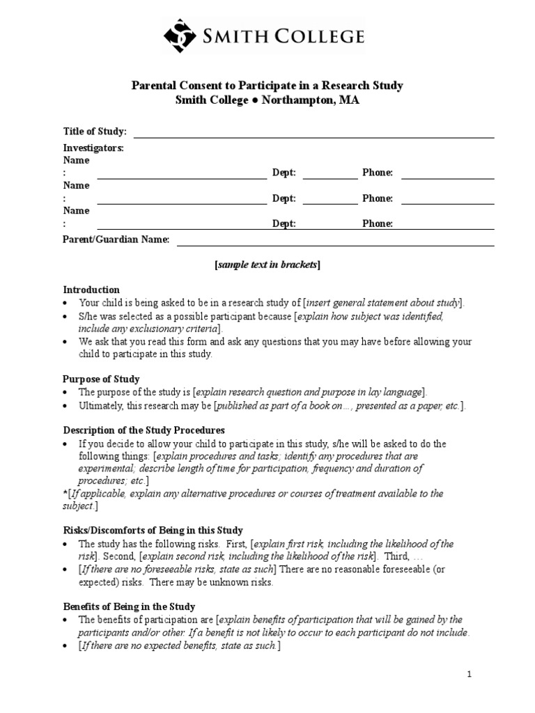 Parent Consent Form For Research Study