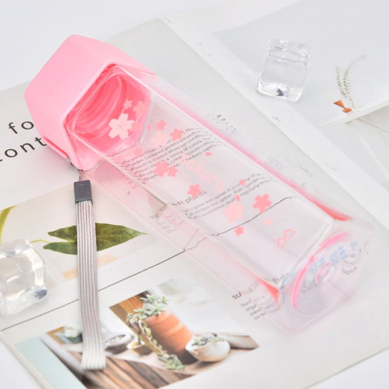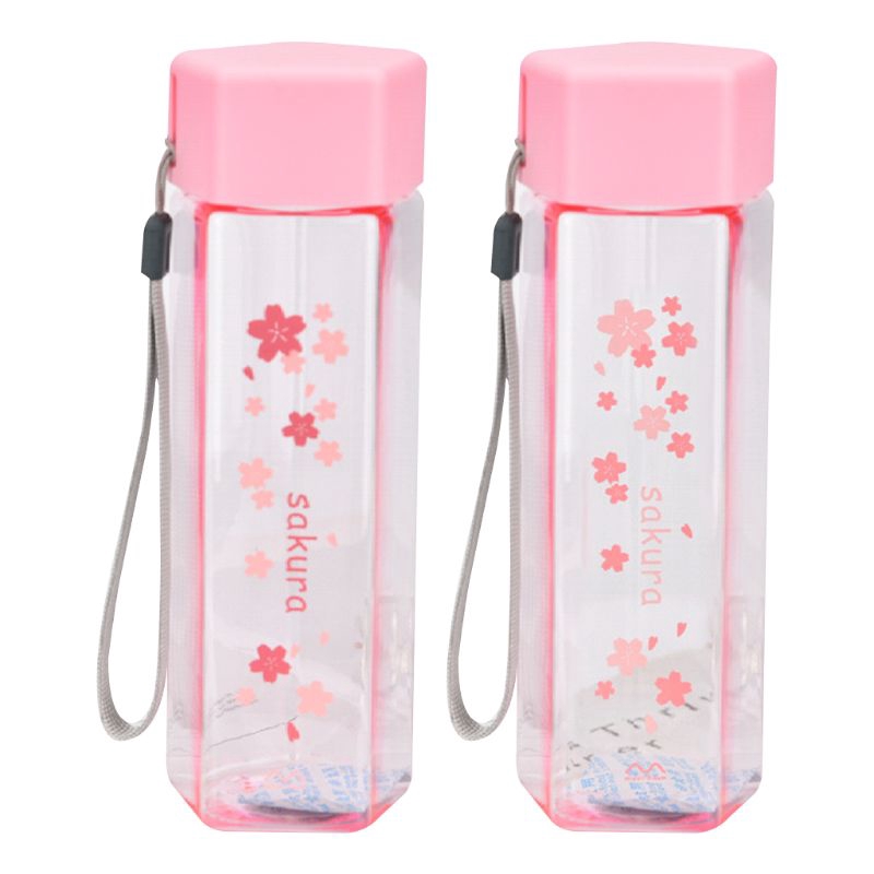Portable Water Bottle Milk Storage Pentagon Sakura Print Sports