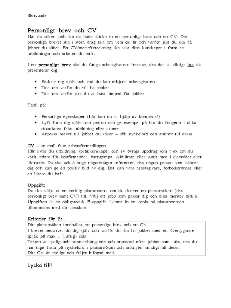 Skriva Cv Och Personligt Brev Jobbb Ett Komplement Till Platsbanken